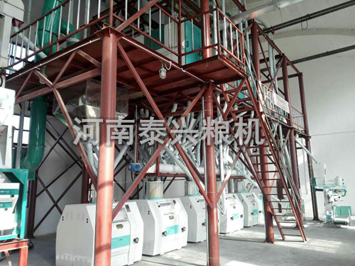 該圖為我公司在新疆庫爾勒地區安裝的一套60噸級面粉機組,該設備采用復式磨,配置高能耗低,生產的面粉非常精細。